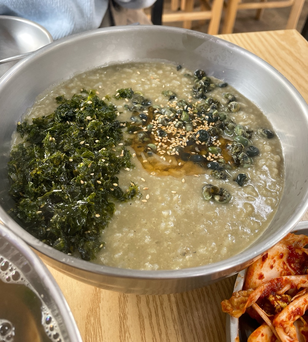 한 숟갈 떠먹으면 고소함과 담백함이 입안 가득 퍼지고, 보말 특유의 쫄깃함이 씹는 재미를 더해줘요.