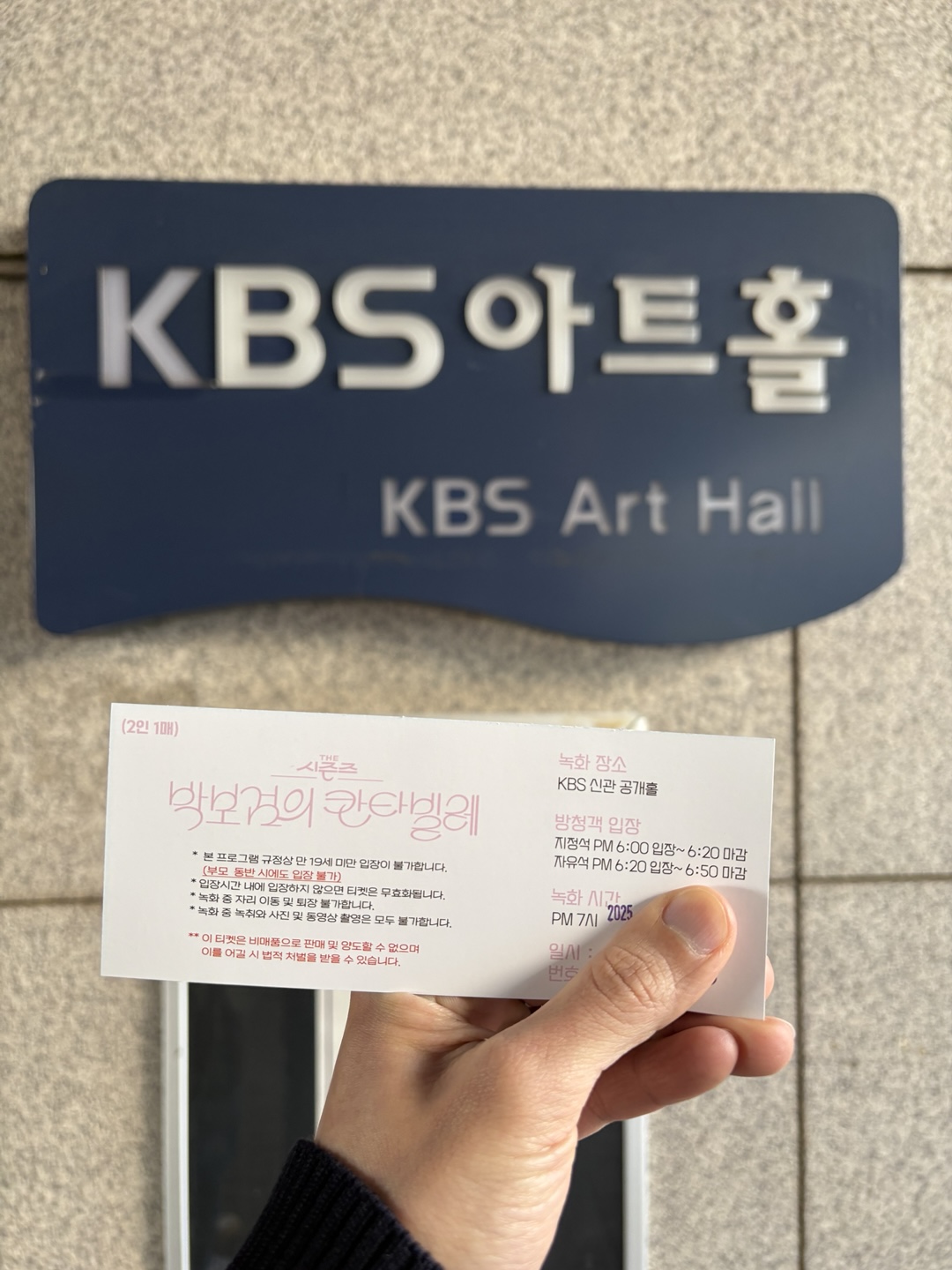 좌석 번호가 적힌 티켓을 받으니, 진짜 박보검 칸타빌레 방청에 온 게 실감났습니다.