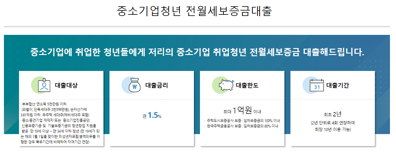 - 중소/중견기업 재직자 or 중소기업진흥공단, 신용보증기금 및 기술보증기금의 청년창업 지원을 받고 있는자