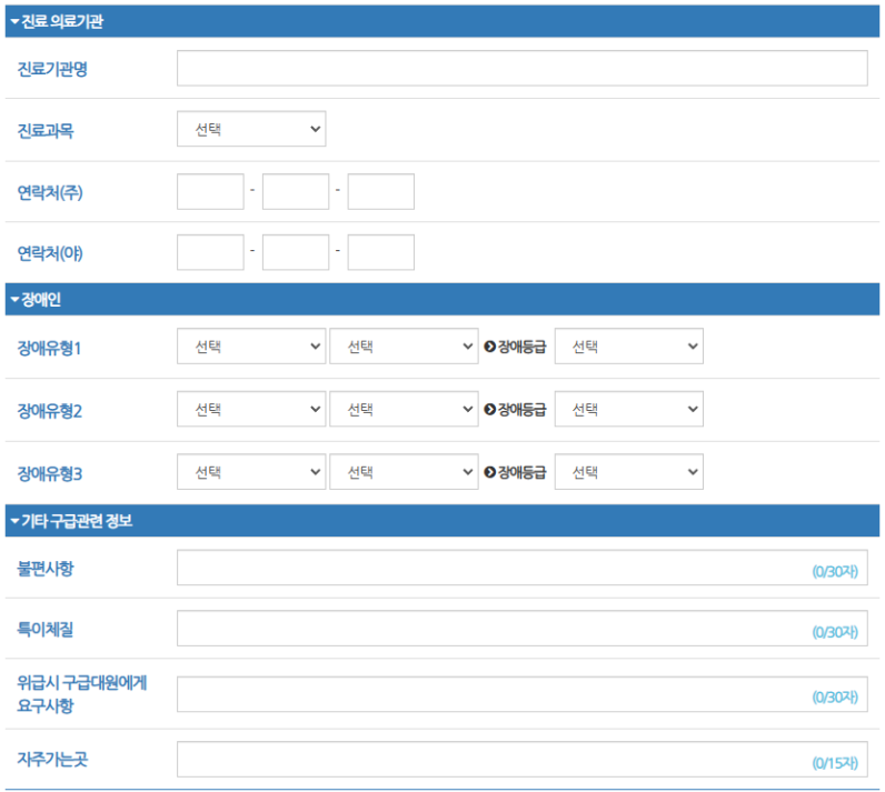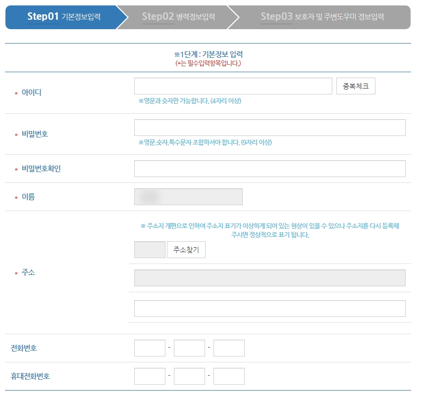 - 병력, 주소, 전화번호 등 개인정보가 변경되었을 경우 본인 또는 대리인이 홈페이지를 통해 변경/등록 필요
