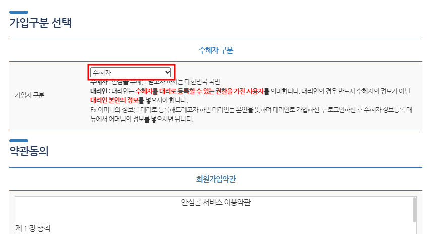 - 수혜자 : 사용자 본인이 서비스 신청하는 경우