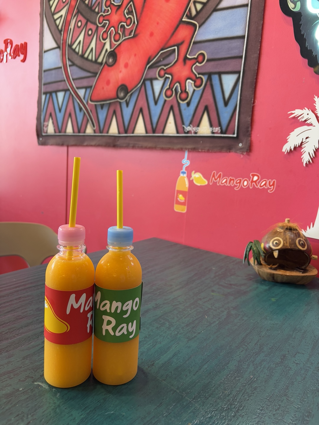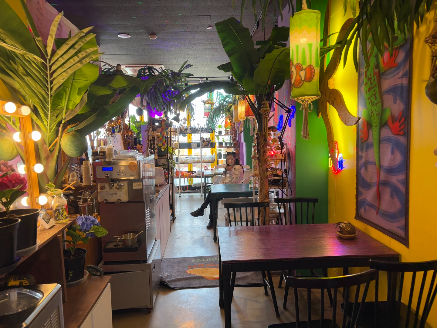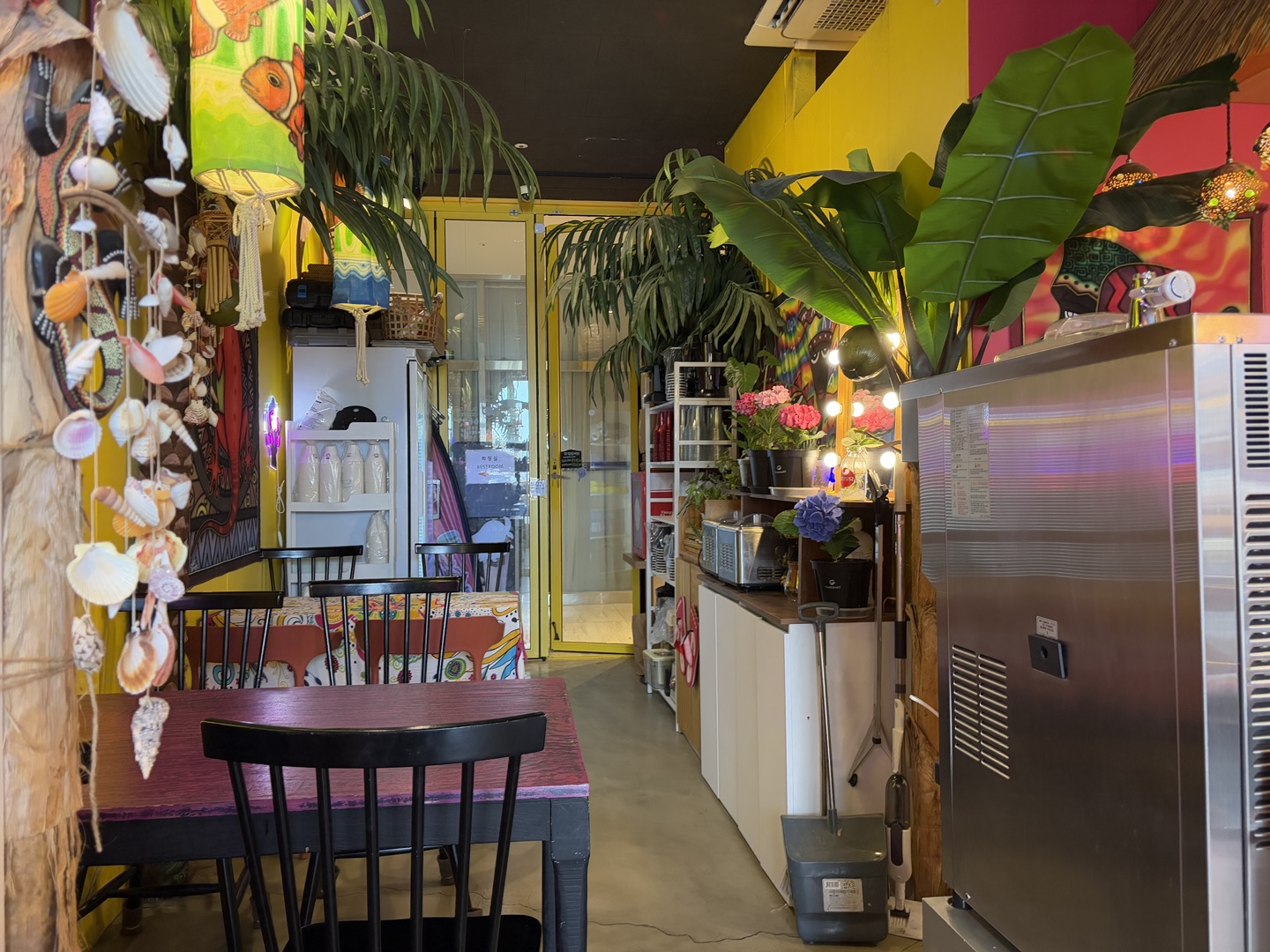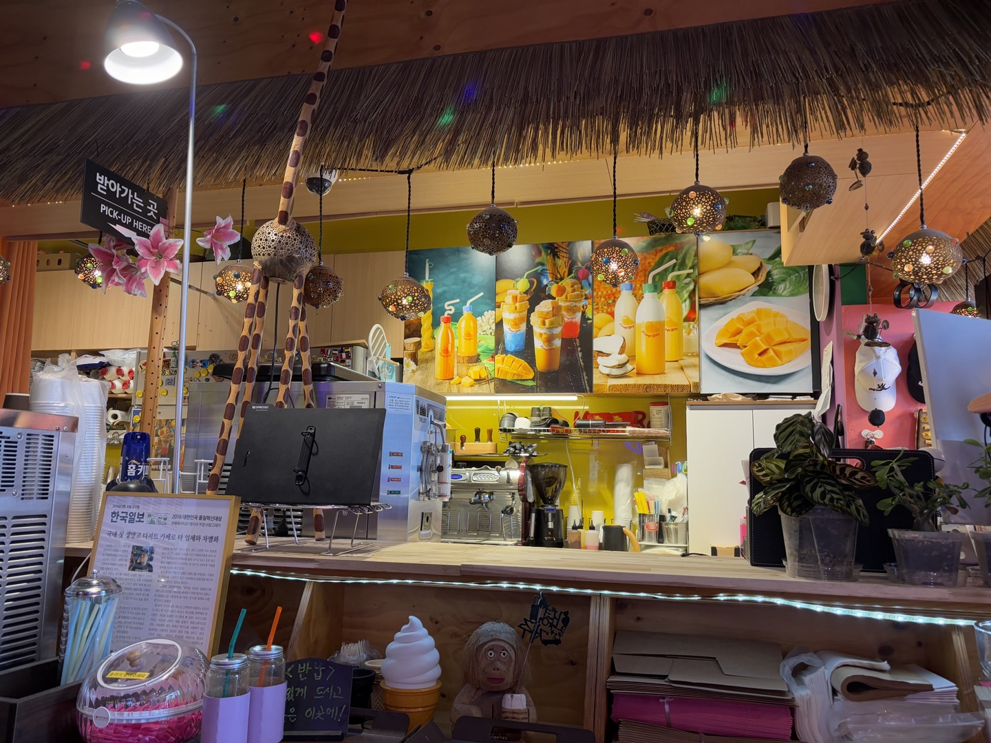 내부는 노란색과 초록색이 어우러진 컬러풀한 인테리어에, 곳곳에 귀여운 망고 소품들이 가득!