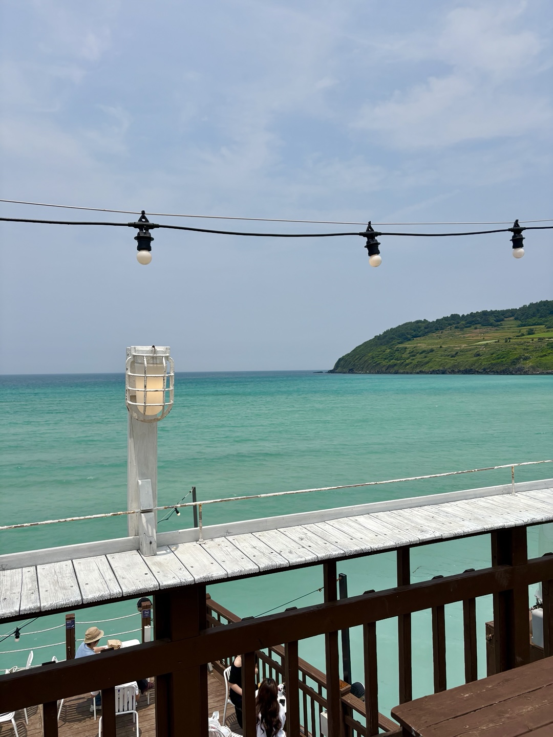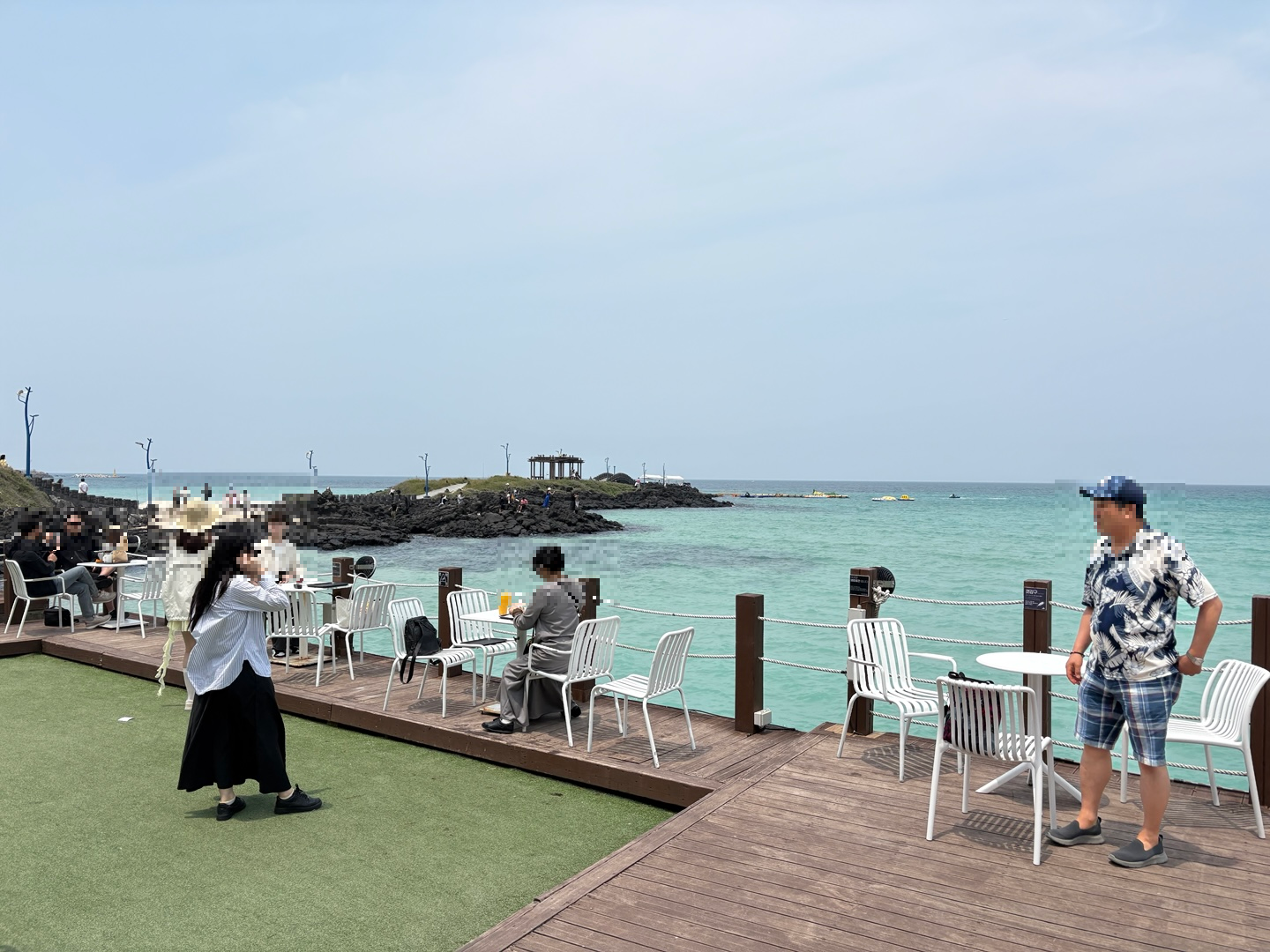 어디에 앉아도 에메랄드빛 제주 바다를 한눈에 감상할 수 있어요.