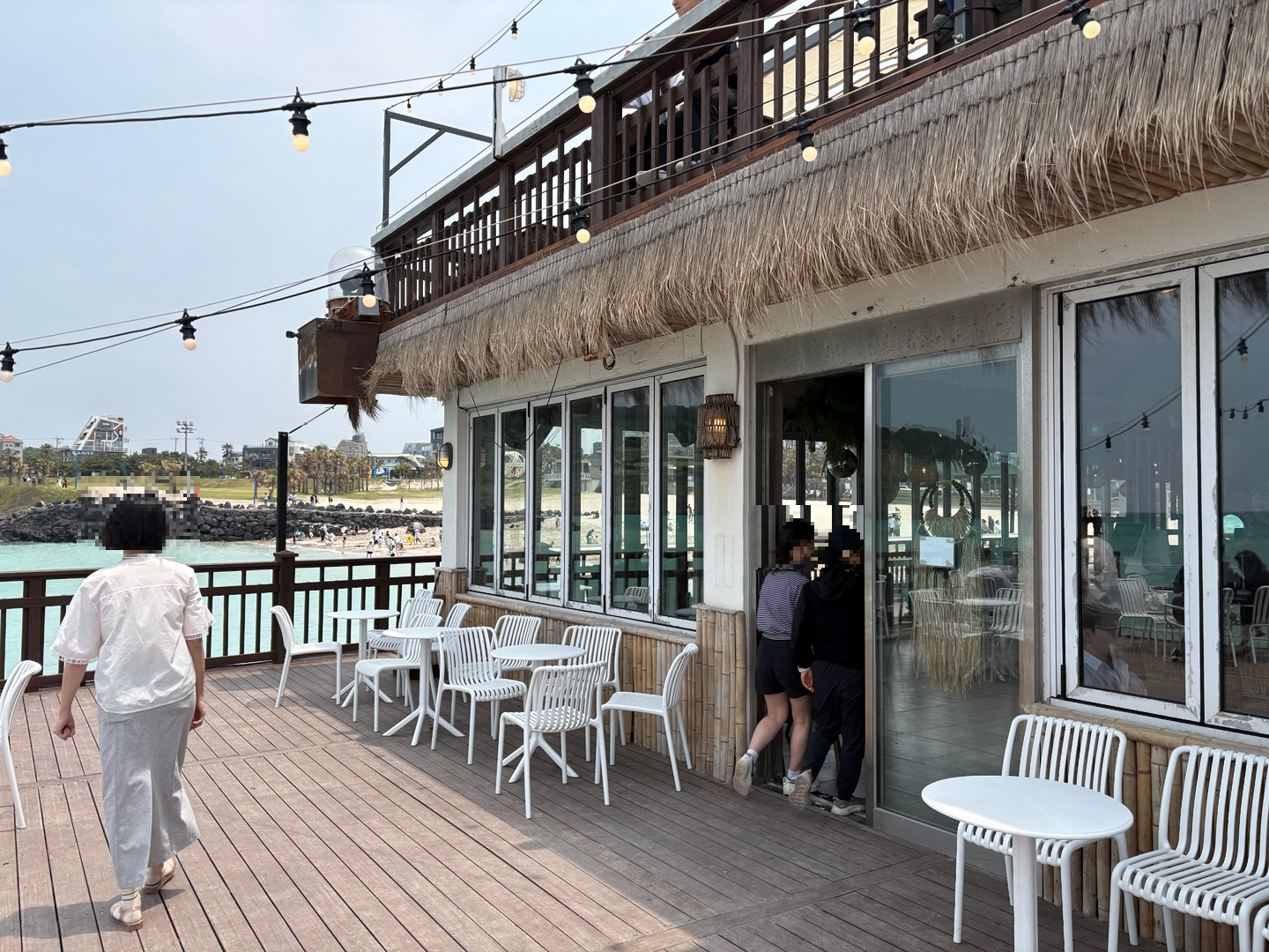 카페 델문도는 함덕해수욕장 한가운데, 바다 위에 떠 있는 듯한 위치라서