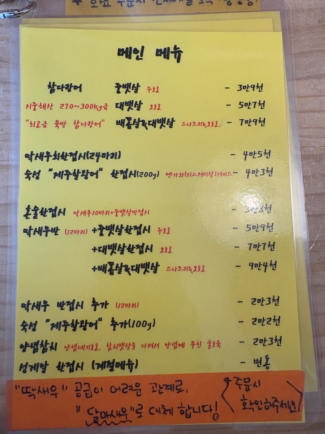저희는 토요일 저녁 6시로 예약하고, 딱새우반+대뱃살 한접시와 오믈렛 국물 떡볶이를 미리 주문해뒀답니다.