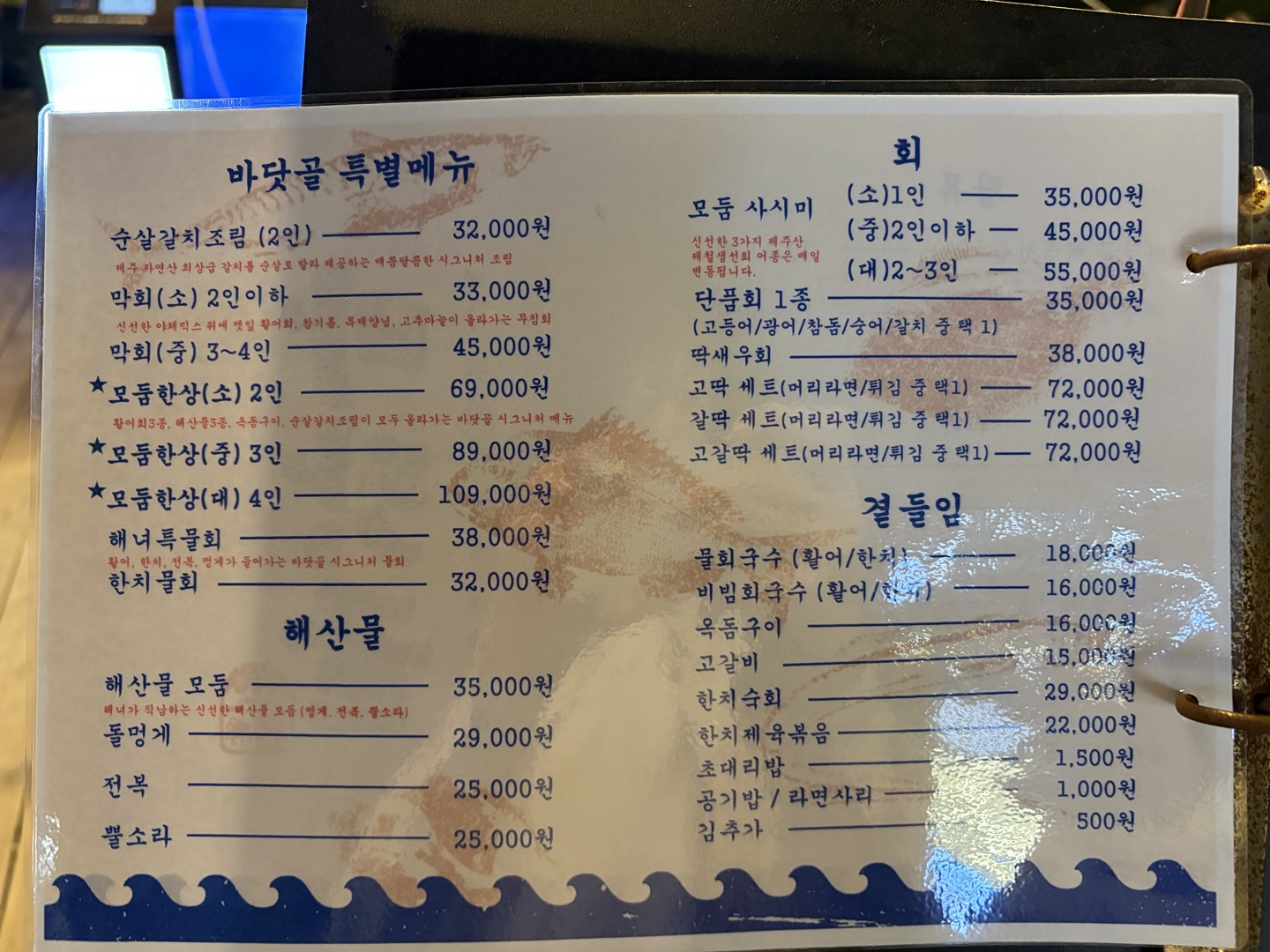 그래서 그런지 해산물의 신선함이 남다르고, 메뉴판도 제주 바다를 제대로 느낄 수 있는 구성!