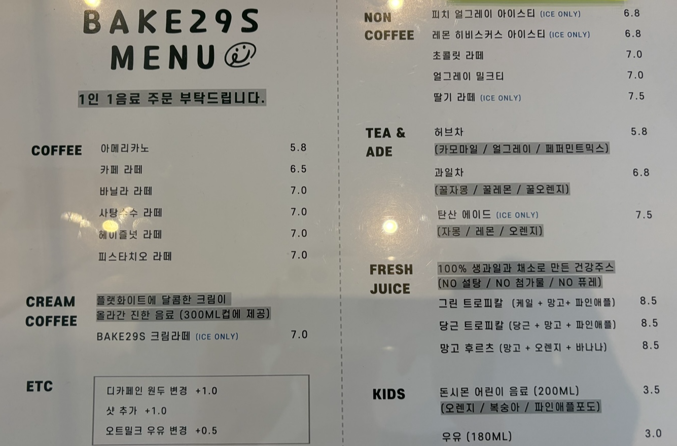 ☕Bake29s 메뉴