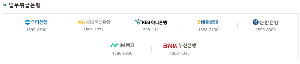 우리은행 · 국민은행 · 하나은행 · 농협은행 · 신한은행 · iM뱅크 · 부산은행