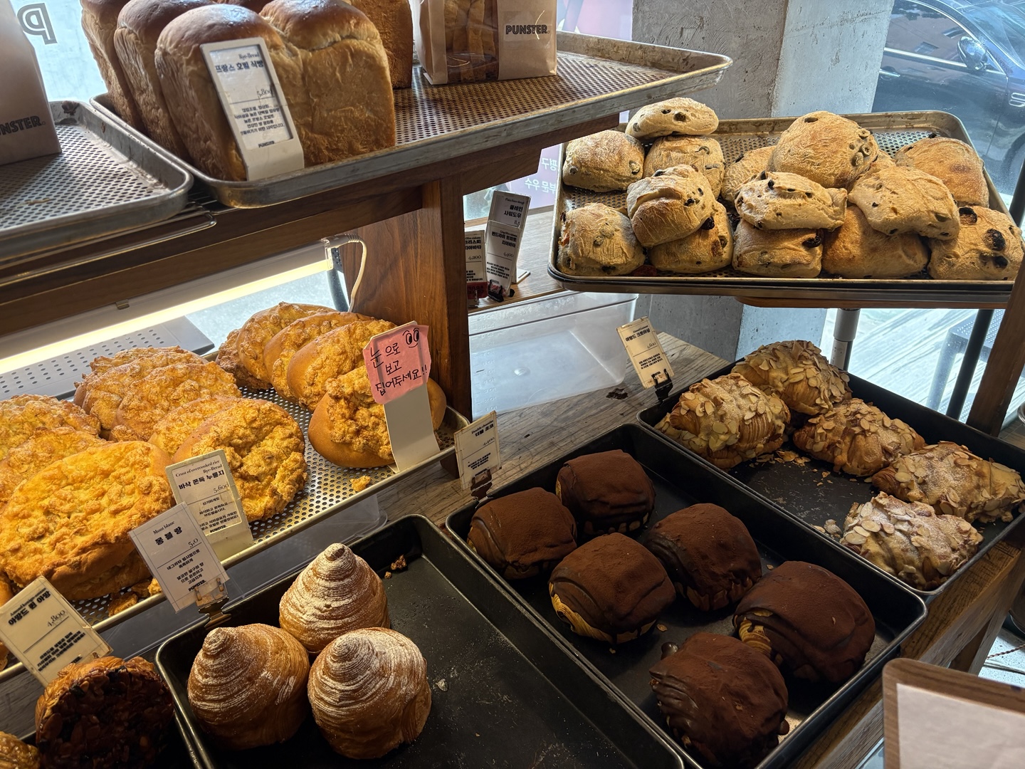 펀스터의 진열대에는 갖가지 페이스트리와 빵이 가득!