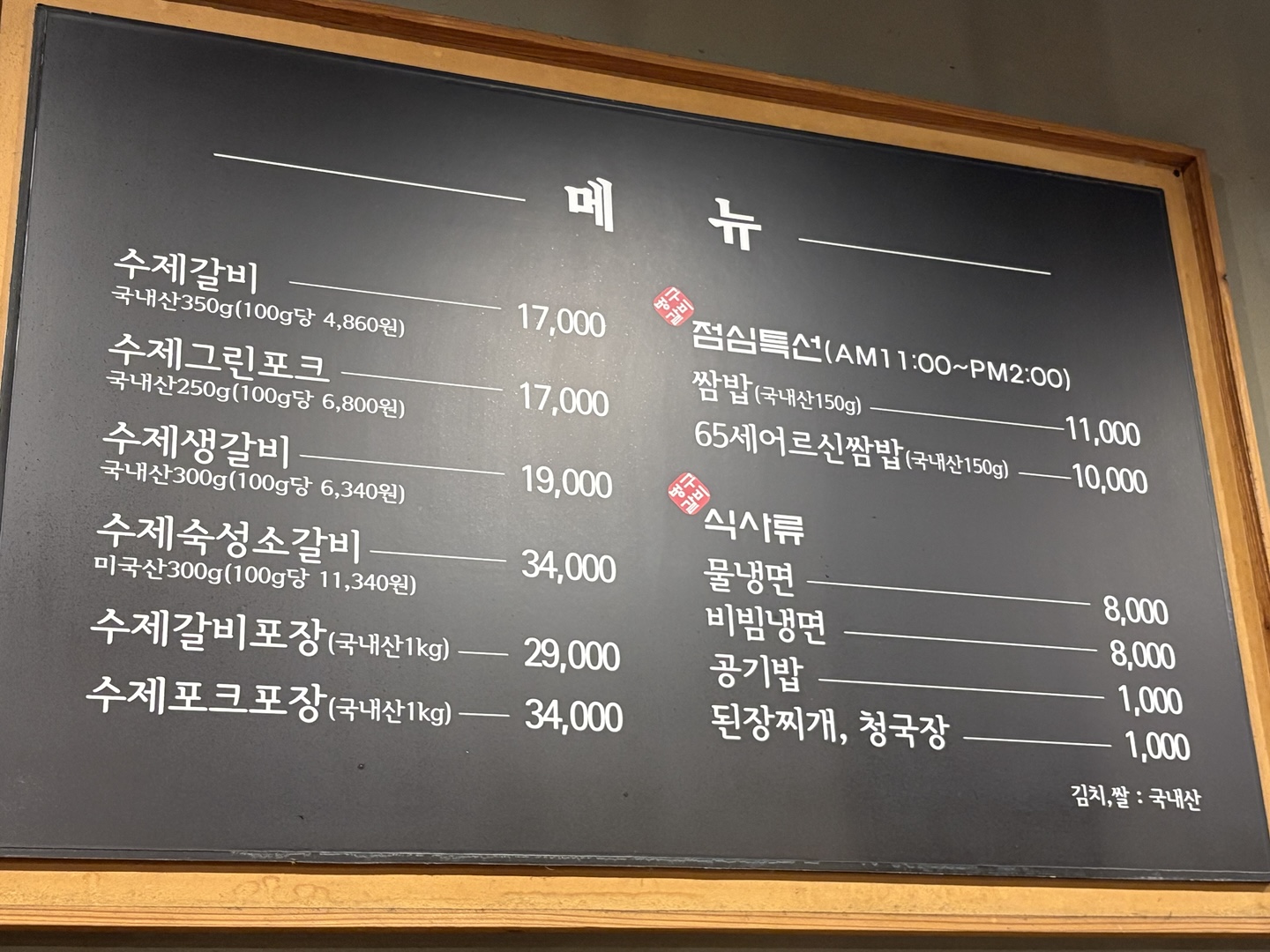 대표메뉴: 수제갈비, 생갈비, 수제그린포크, 쌈밥, 냉면