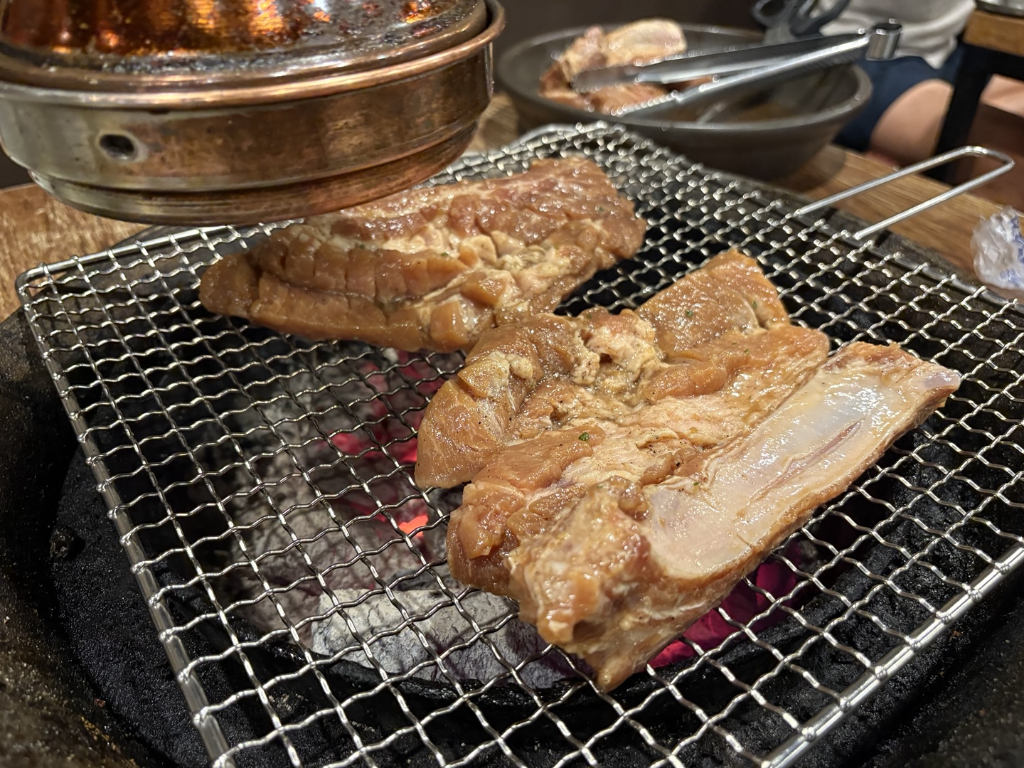 테이블에 앉자마자 직원분이 바로 숯불을 세팅해주시고, 빠른 서비스로 주문을 받아줍니다.