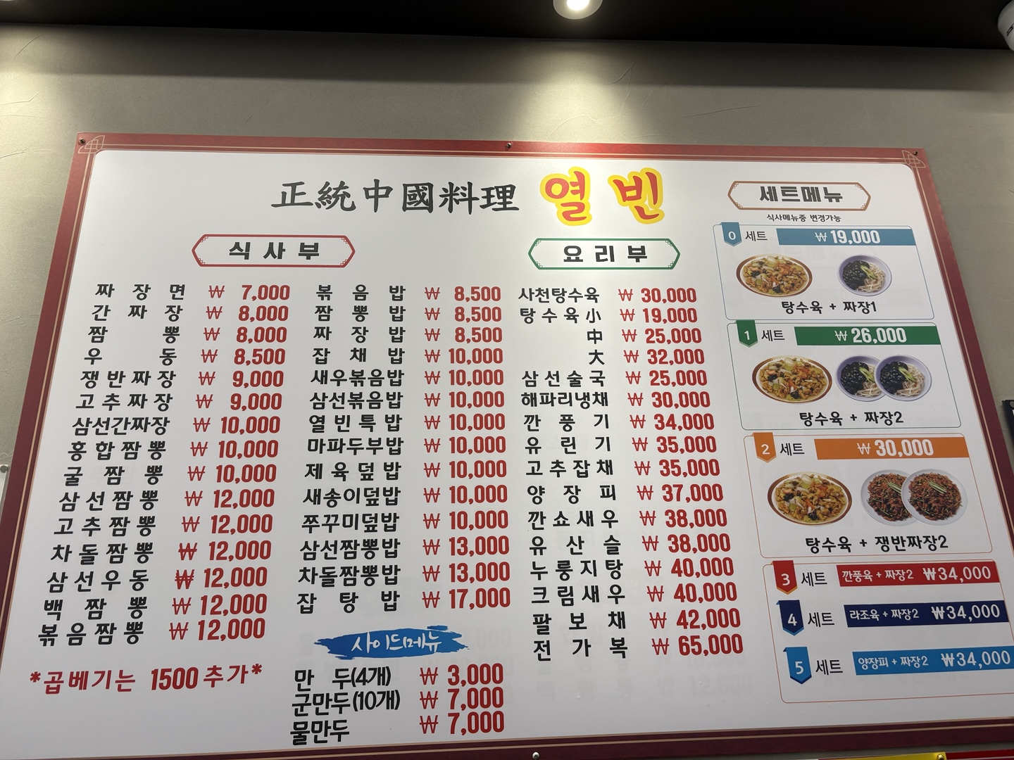 열빈중화요리는 세트 메뉴 구성이 다양하고 실속 있게 나와서 평일, 주말 늘 인기예요.