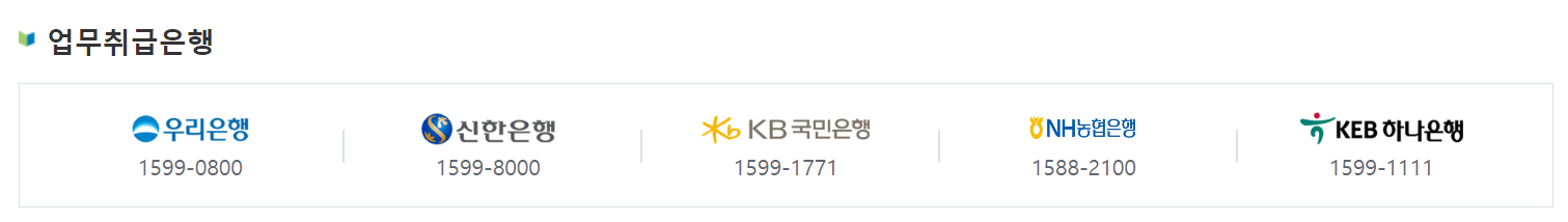 - 우리은행 / 신한은행 / KB국민은행 / NH농협은행 / KEB하나은행
