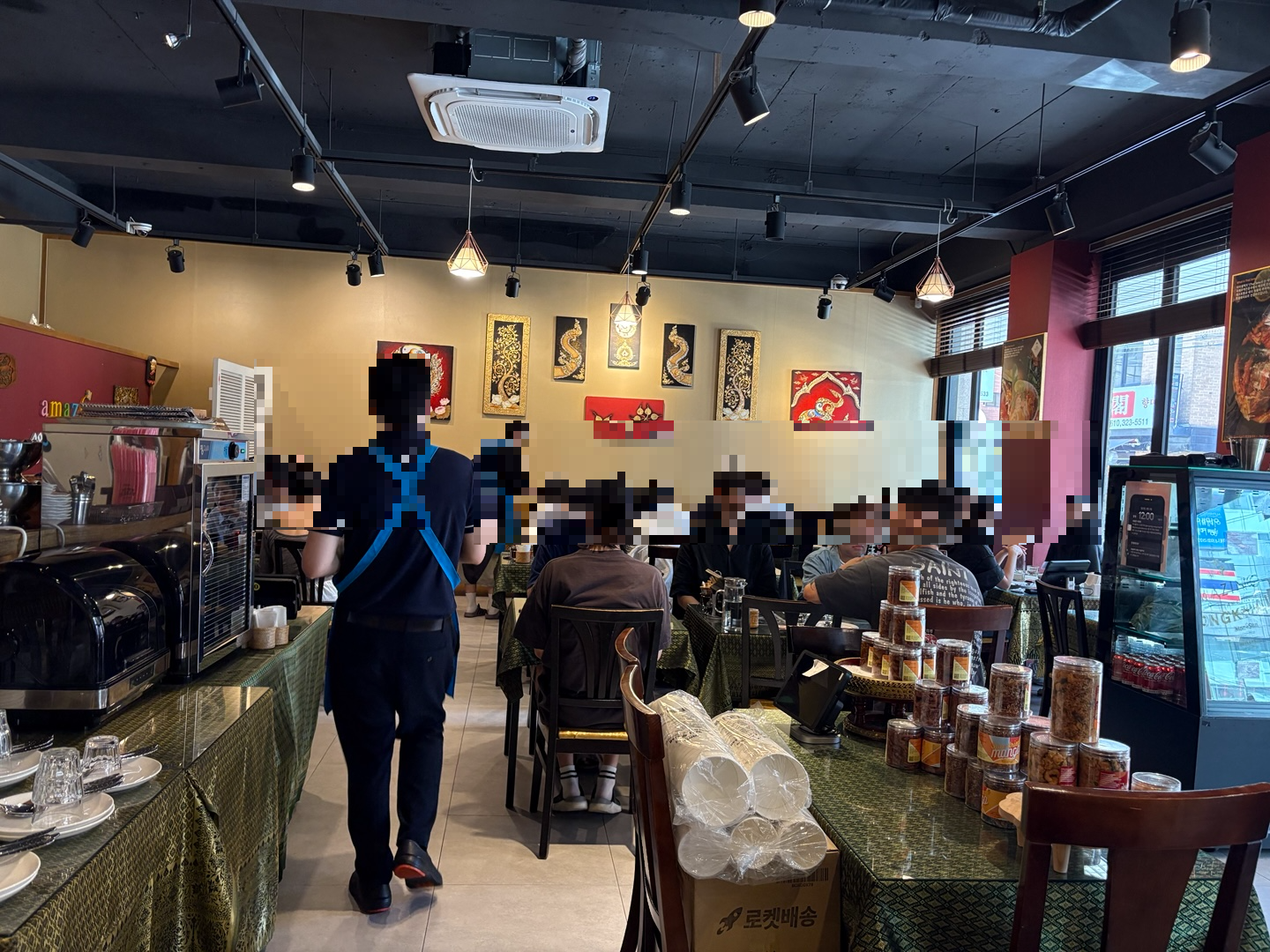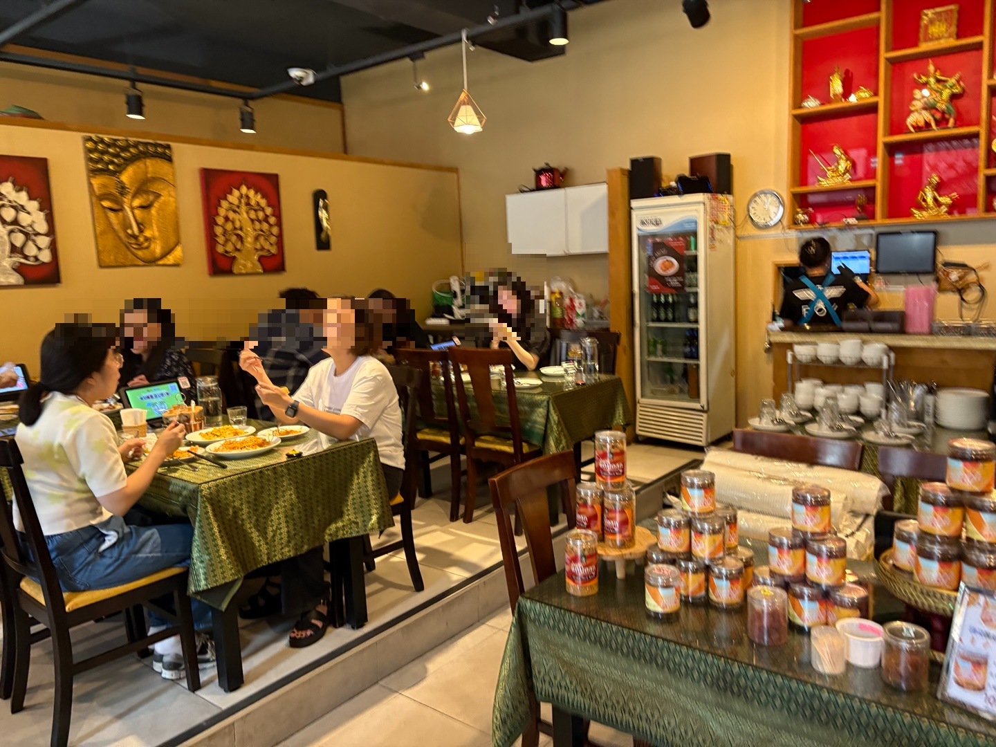 벽면의 태국 소품들과 이국적인 음악에 마치 방콕에 온 듯한 기분이 들었어요.