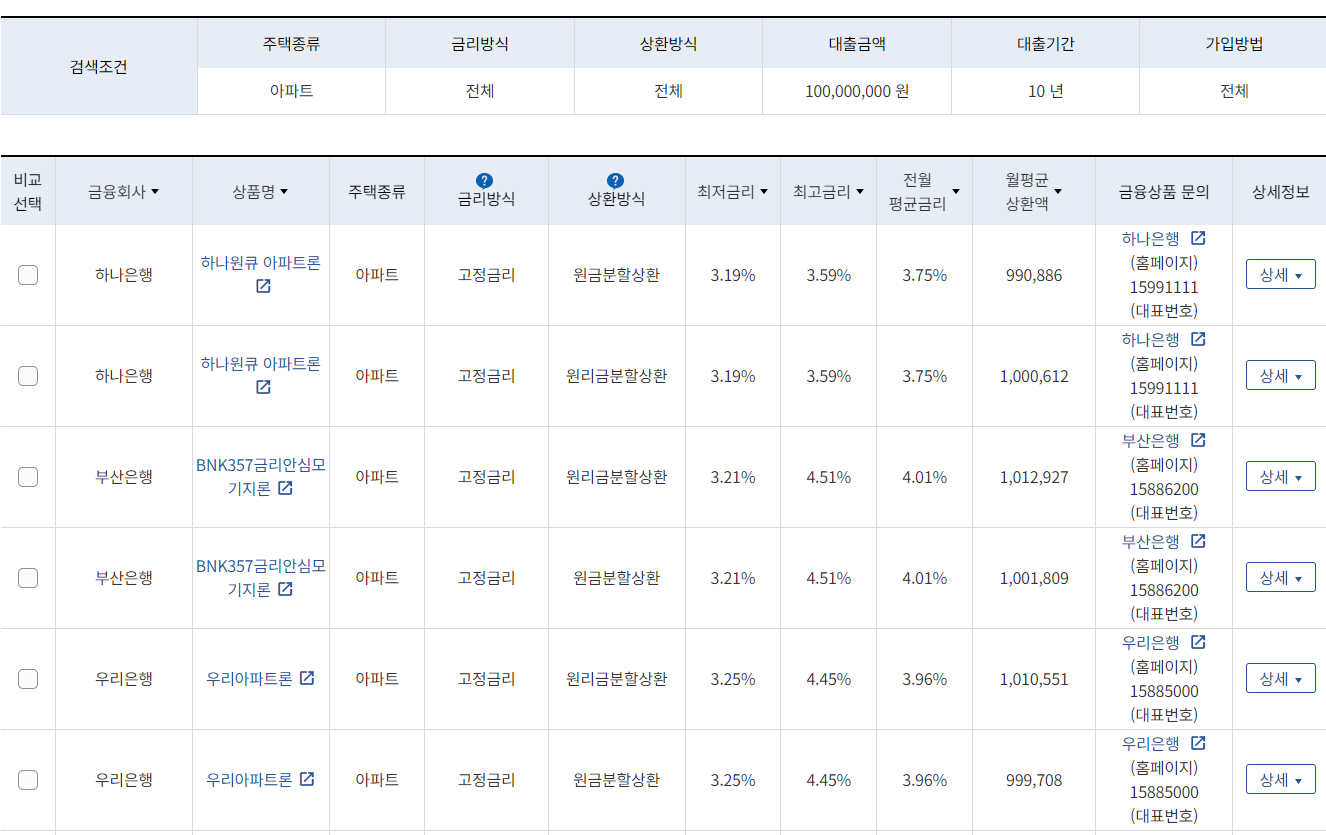 금융감독원에서 운영하는 금융상품 비교 사이트로, 주택담보대출 금리를 한눈에 비교할 수 있는 페이지를 운영하고 있습니다.