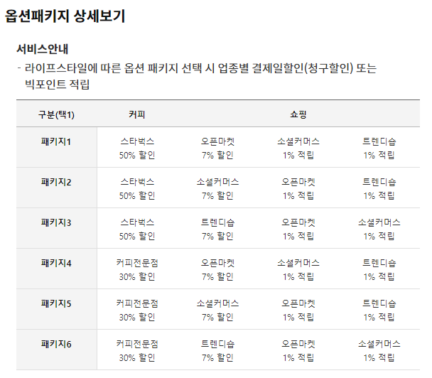 저는 옵션패키지 중에 패키지 4번을 골랐었네요 ㅎㅎ 스타벅스 매장보다는 여러 카페를 골고루 이용거든요