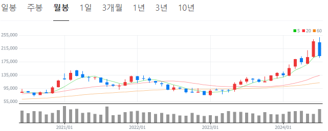 우리나라 시가총액 2위에 달하는 기업이 맞나 싶을 정도의 상승세를 보여줬죠