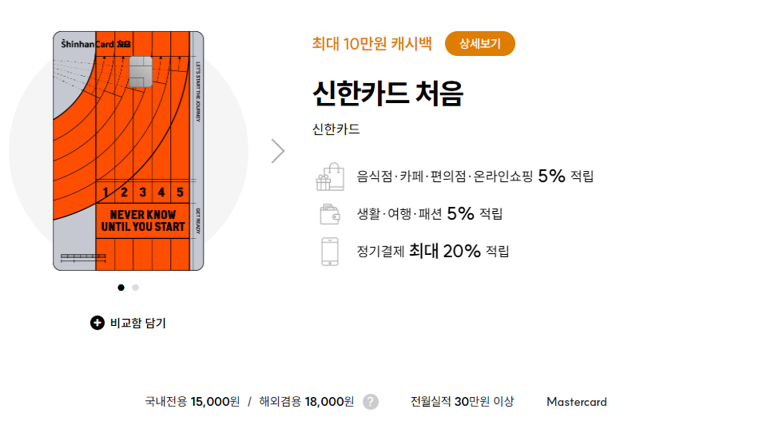 [연회비 18,000원 / 전월실적 30만원 이상]