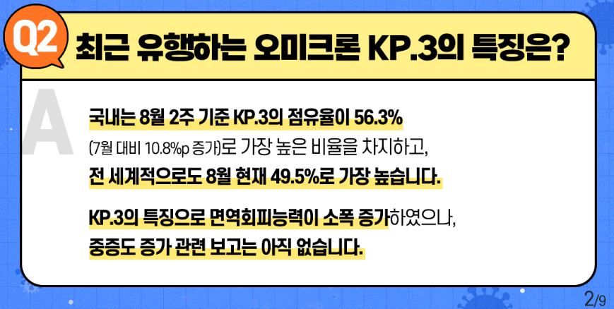 최근 유행하고 있는 KP.3의 주된 증상은 발열이나 기침보다는 근육통, 두통, 목아픔 증상이 두드러진다는 말도 있어요