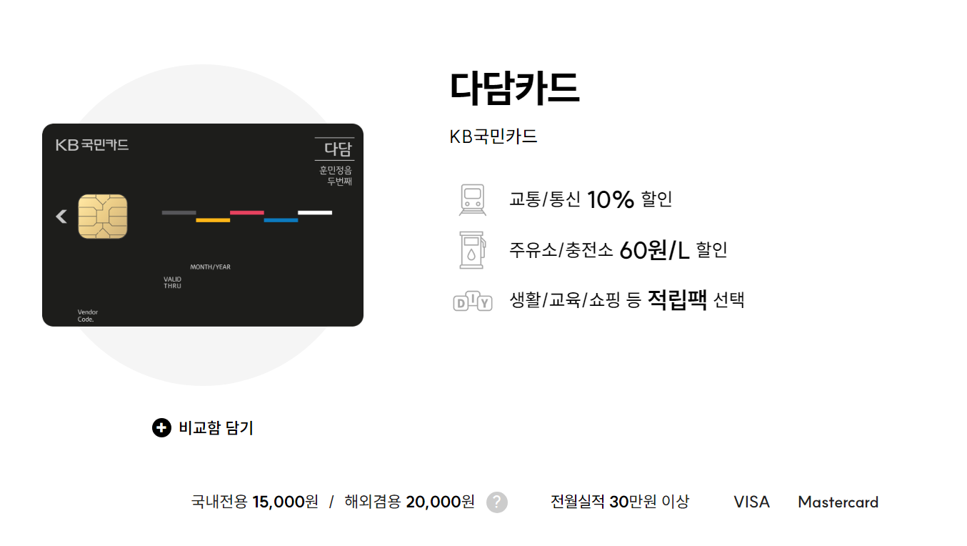 2. 국민카드 다담카드