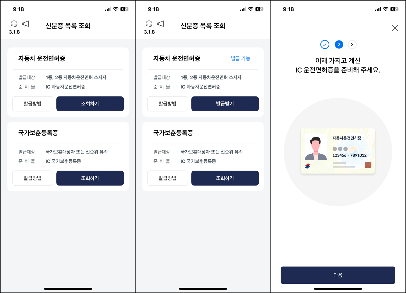 발급된 모바일 운전면허증을 차례대로 확인하실 수 있습니다.