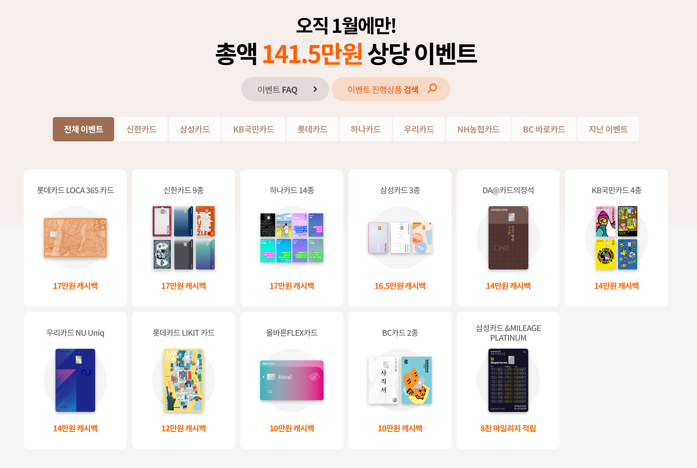 우선 카드고릴라에서는 다양한 신용카드의 이벤트를 진행하기 때문에 선택지가 많고 좋습니다👍🏻