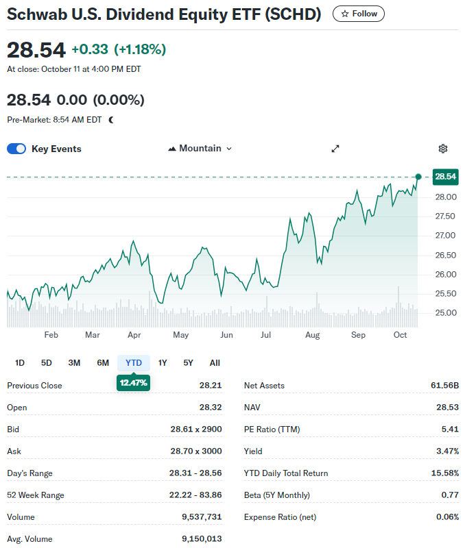 첫번째는 미국 배당주로 유명한 SCHD로, 안정적인 성과와 낮은 운영 비용으로 이미 투자자들에게 많이 알려져있습니다.