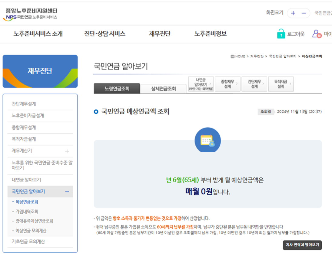 3. 인증서로 접속한 뒤 예상연금액 조회
