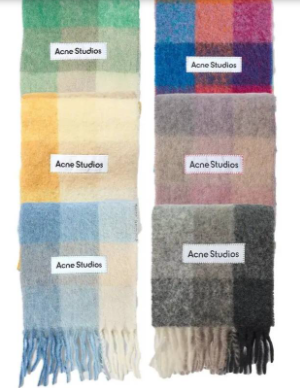 기존에는 패턴 없는 기본 컬러의 아크네 머플러가 인기였지만, 요즘에는 체크무늬의 모헤어 머플러가 포인트 주기에 예뻐서 크리스마스 선물로 제격입니다.