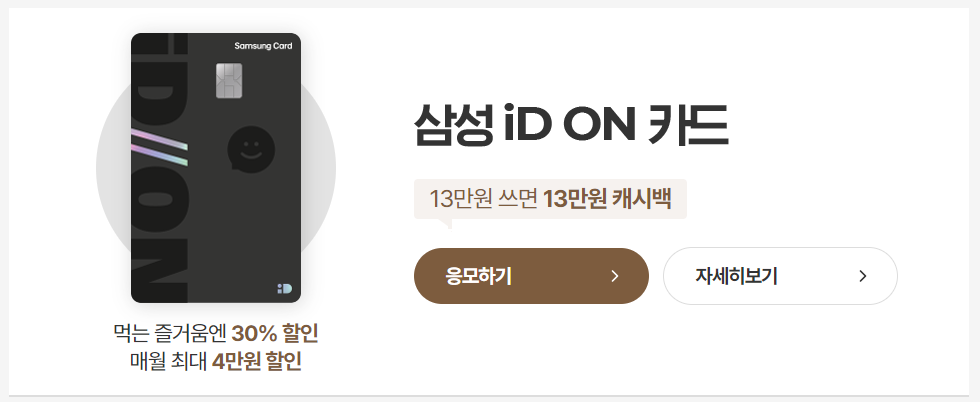 23년 1월 31일까지 삼성 iD ON 카드 신규 발급 13만원 캐시백 이벤트도 진행하고 있으니,