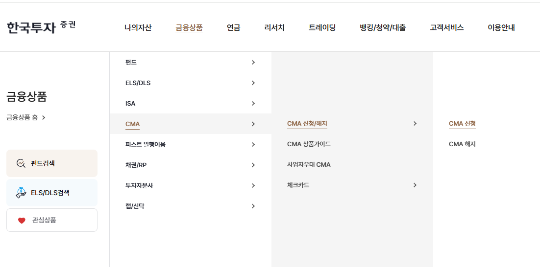 한국투자증권 CMA 계좌는 한국투자증권 홈페이지에서 만들 수 있습니다.