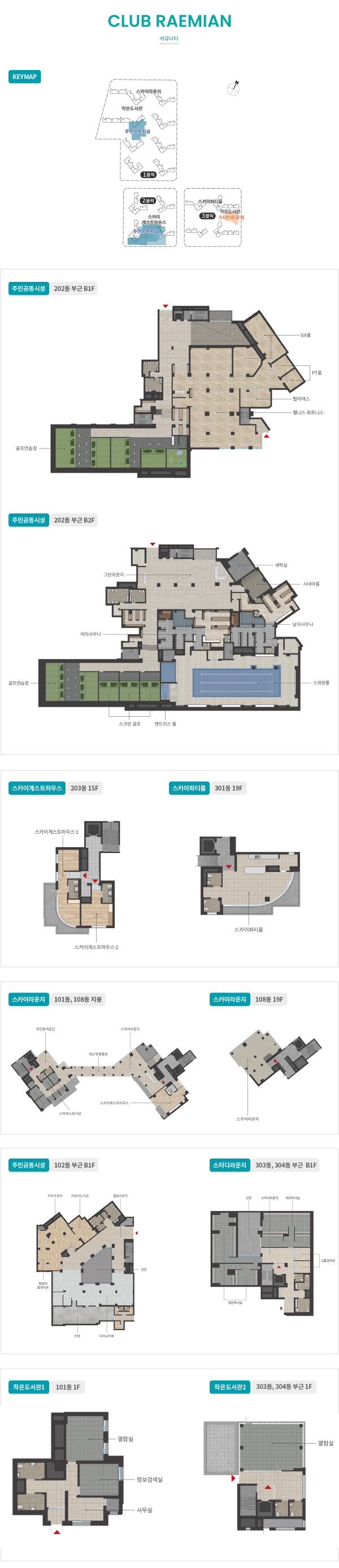 - 시네마룸, 세탁실, 파티룸, 게스트하우스, 어린이도서관, 키즈라운지, 독서실