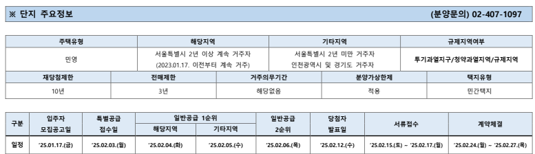 - 일반공급 2순위 : 2025년 2월 6일(목)