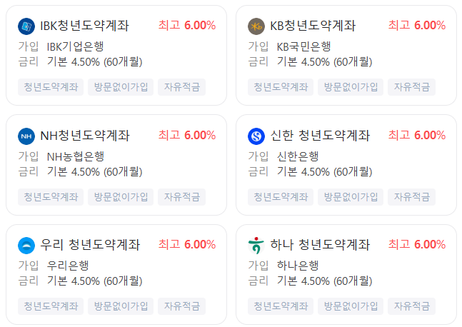위의 청년도약계좌 가입조건에 부합한다면, 아래 협약 시중은행 중 하나를 통해 가입할 수 있습니다.