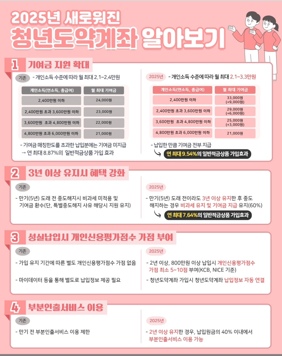 2025년도 청년도약계좌에 변화가 있었던 내용을 알아보도록 하겠습니다.