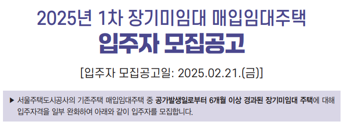 이번 2025년 1차 SH 장기미임대 매입임대주 입주자 모집공고일 2025년 2월 21일 기준으로