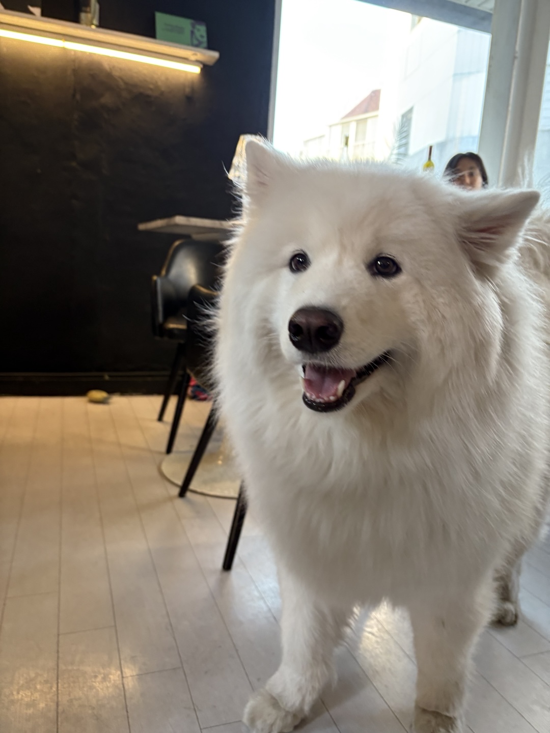 블랑누아의 시그니처 매력 중 하나는 바로 사모예드 강아지 보르도입니다.