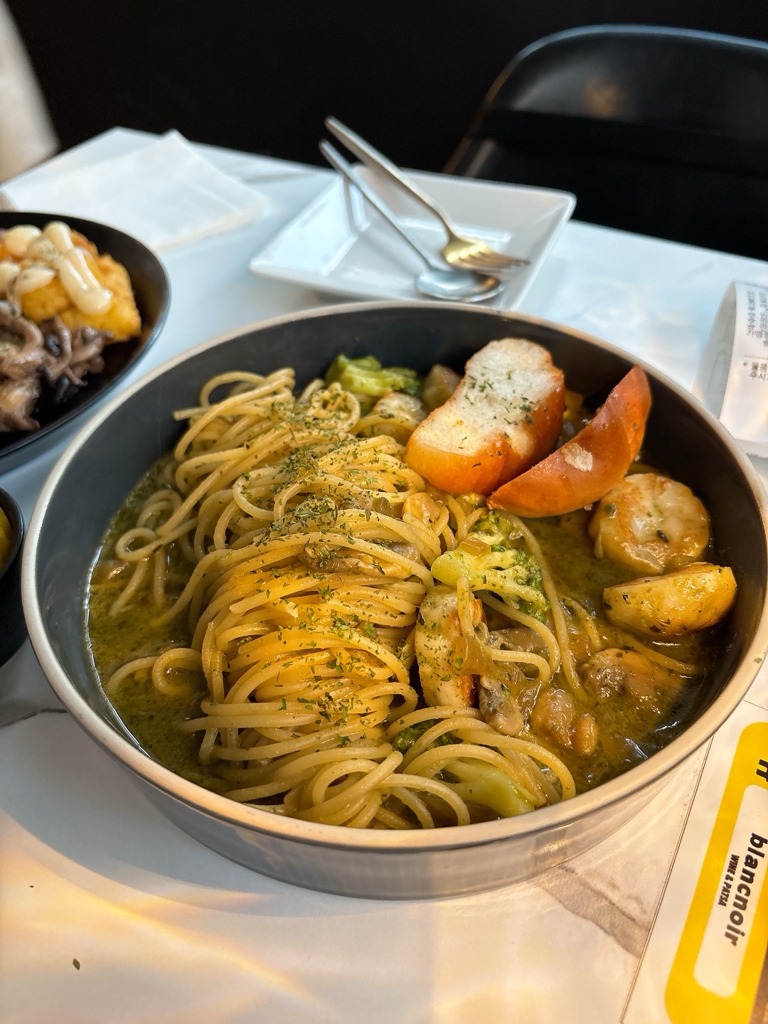 블랑누아에서 와인과 가장 잘 어울리는 파스타로 강력 추천해요.