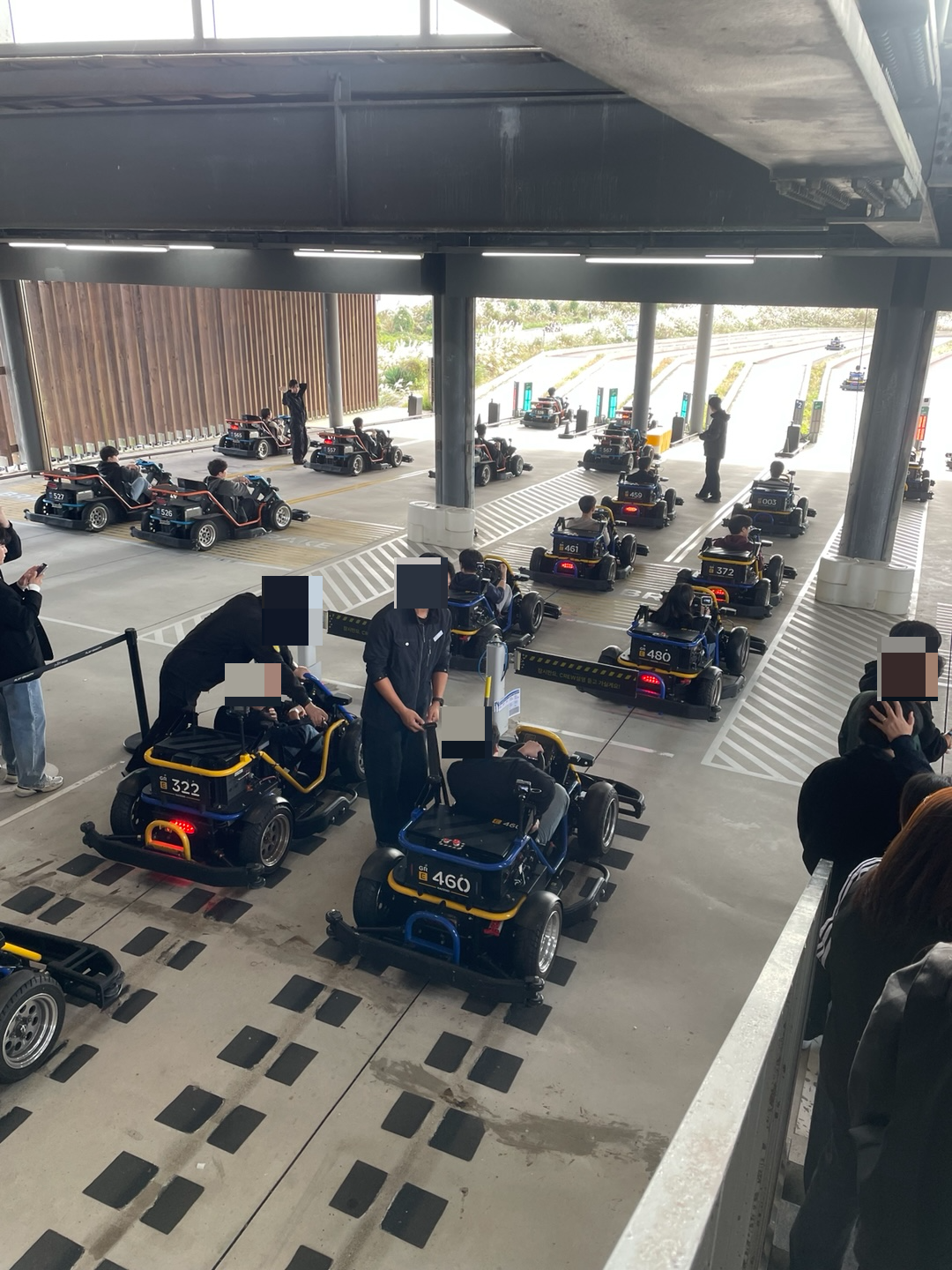 카트 경주를 위해 지정된 시간에 맞춰 레이싱 존으로 이동했어요.
